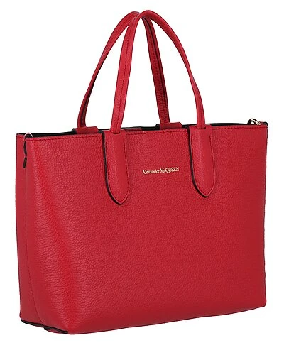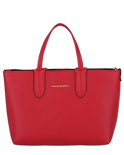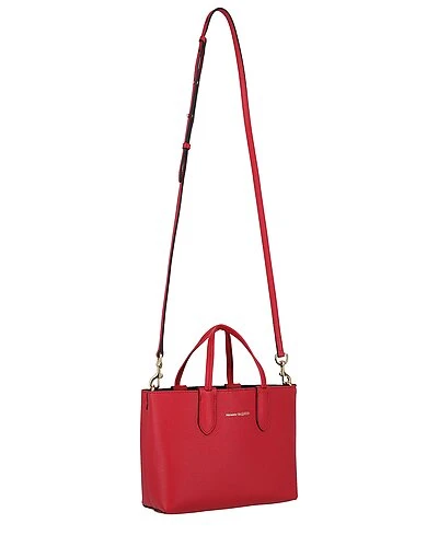 - Mini Leather Shopper Tote in crimson calfskin leather and gold-tone hardware with detachable and adjustable leather crossbody strap