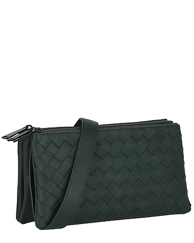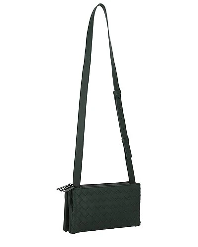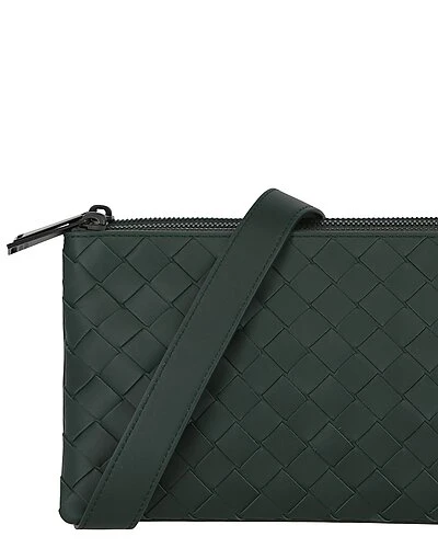 - Intrecciato Leather Messenger Bag in pine green lambskin leather with signature intrecciato design