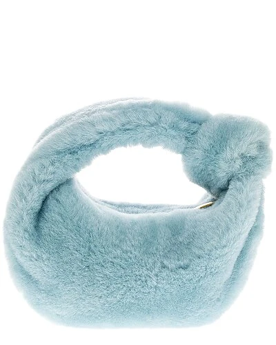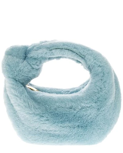 - Jodie Mini Shearling Hobo Bag in pale blue shearling and gold-tone hardware with dyed lamb shearling and knot accent