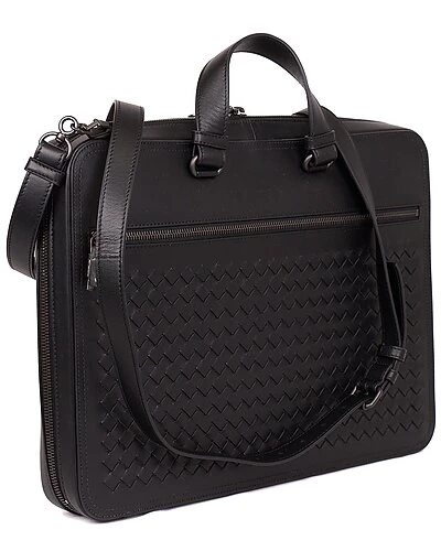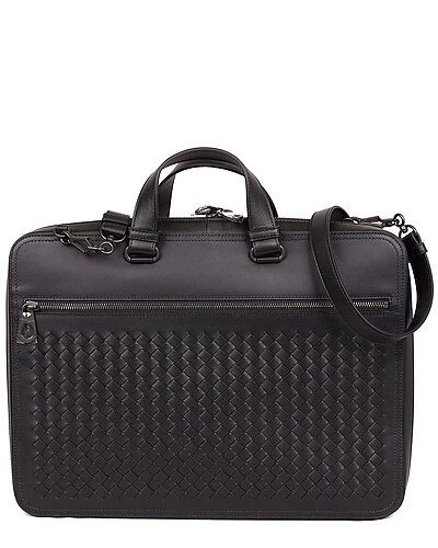 - Leather Briefcase in black leather and silver-tone hardware with exterior zipper