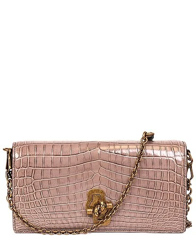 - Snake-Embossed Leather Clutch in grey leather and silver-tone hardware with clasp closing and chain strap