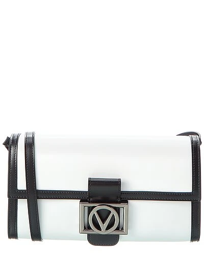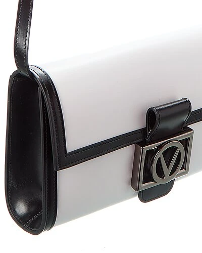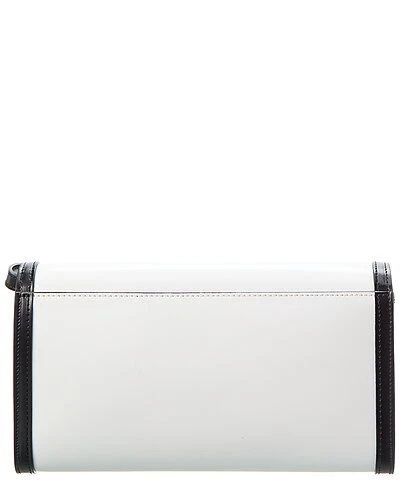 - Ava V Emblem Leather Clutch in black and white leather and gunmetal-tone hardware with logo accent