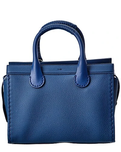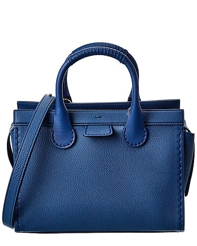 - Edith Leather Tote in denim leather with gold-tone hardware and leather-wrapped handles