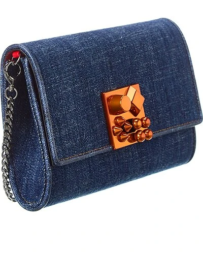 - Carasky Canvas Wallet On Chain in denim canvas and silver-tone and orange hardware with spike and stud embellishments