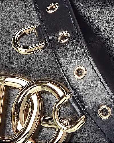 - 3.5 Leather Crossbody in black leather and gold-tone hardware with logo accent and stud embellishments