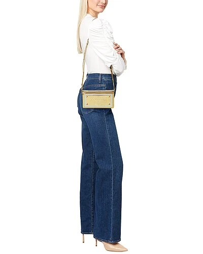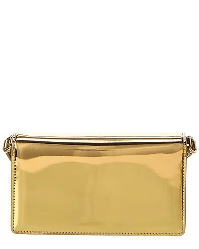 - Branded Maxi-Plate Leather Phone Bag in gold leather with gold-tone and silver-tone hardware