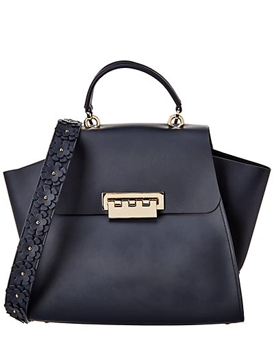 - Exterior design details: gold-tone hardware, exterior slide pocket on back, floral appliques at shoulder strap
