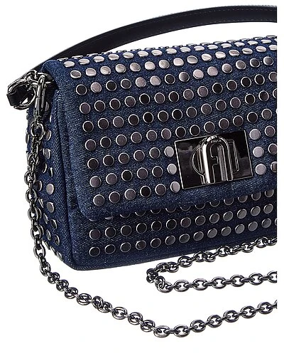 - Furla 1927 is a mini crossbody bag made of denim decorated with studs. Featuring a strap with metal chain sections, it can also be worn comfortably as a shoulder bag. The accessory features a twist closure with the Furla logo, making it practical and functional. Gold-tone hardware.