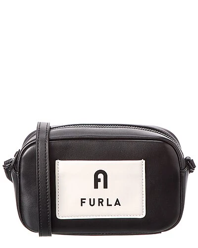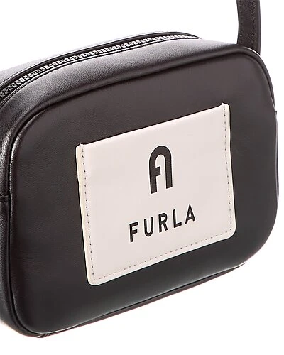 - Iris Mini Leather Crossbody in nero and talco leather with exterior pocket