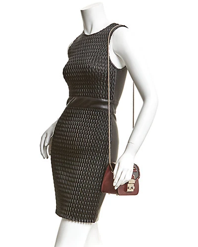 - Exterior design details: metallic hardware and studs, exterior pocket