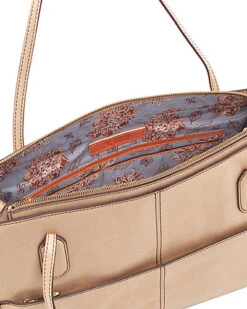 - Interior design details: suede lining, zippered canvas pocket