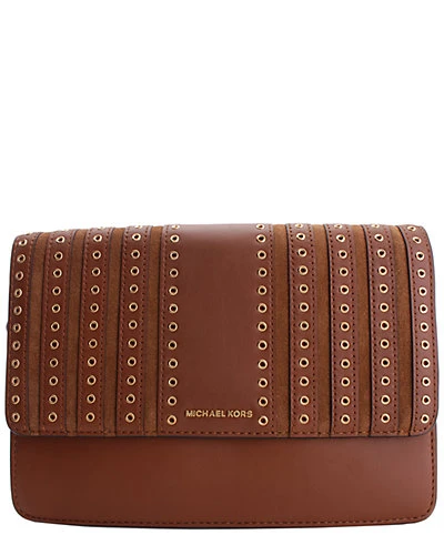 - Exterior design details: gold-tone hardware; gold circle stud embellishment