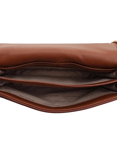 - Gold Chain/Leather Strap, Adjustable shoulder strap drops approximately 26in