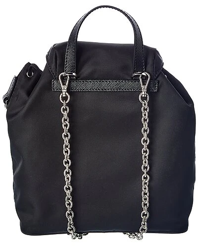 - Mini Vela Backpack in black vela textile and steel finish hardware with logo accent and exterior pockets