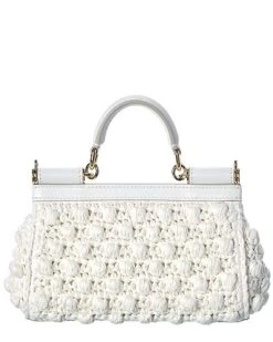 Dolce & Gabbana Sicily Small Crochet & Leather Satchel Women