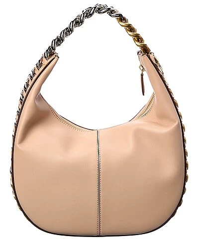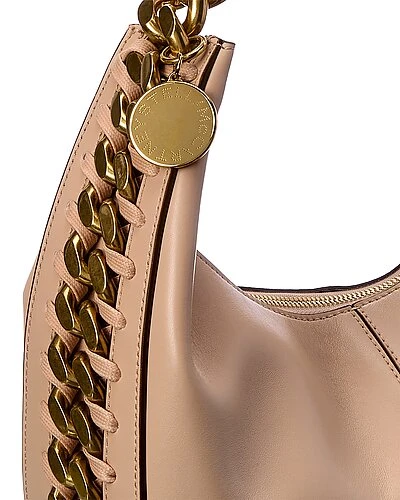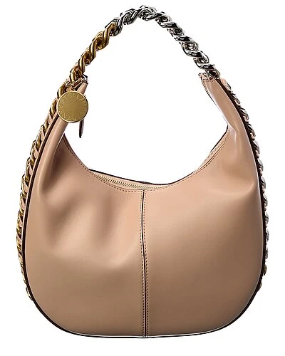 - Frayme Small Zipit Hobo Bag in pink vegan-friendly faux leather and gold-tone and silver-tone hardware with chunky chain trim