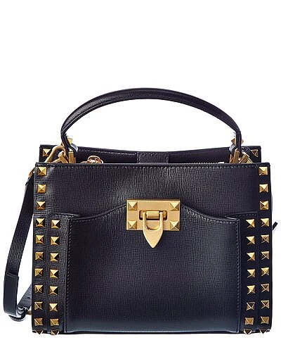 - Rockstud Alcove Grainy Leather Shoulder Bag in black leather with gold-tone hardware and rockstuds