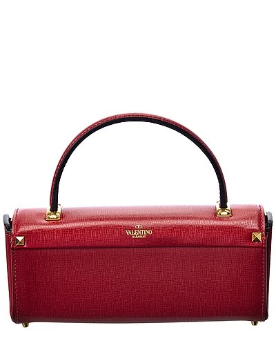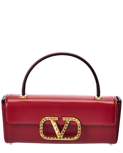 - Rockstud Alcove Leather Shoulder Bag Tote in red leather and gold-tone hardware with VLogo accent and rockstuds