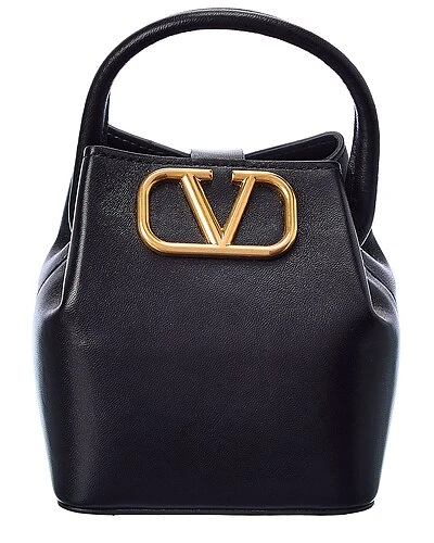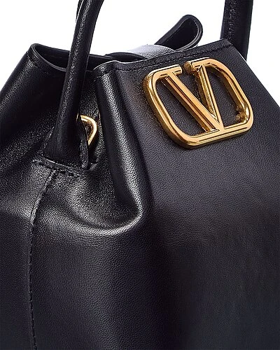 - VLogo Leather Bucket Bag in black leather and gold-tone hardware with VLogo accent