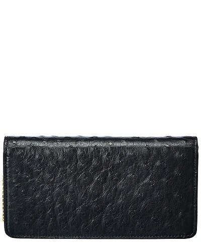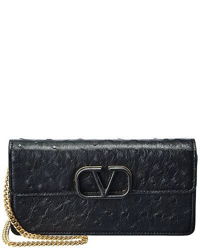 - VSLING Leather Wallet On Chain in black ostrich leather with gold-tone hardware
