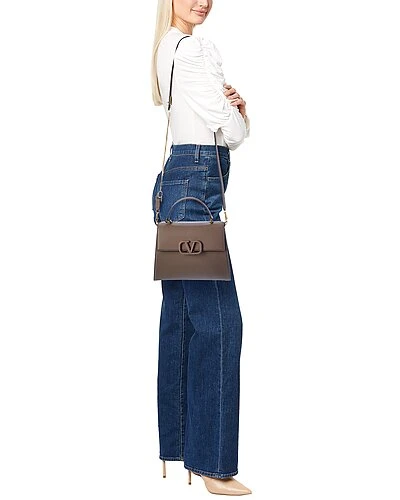 - VSLING Small Leather Satchel in grey leather and gold-tone hardware with VLogo accent