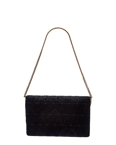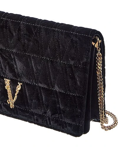 - Virtus Velvet Wallet On Chain in black velvet with gold-tone hardware